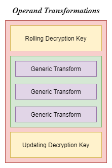 Transformations - The term “transform” used throughout this post refers specifically to operations done to decrypt operands of virtual instructions and vm handler table entries. These transformations consist of add, sub, inc, dec, not, neg, shl, shr, ror, rol, and lastly BSWAP. Transformations are done with sizes of 1, 2, 4, and 8 bytes. Transformations can also have immediate/constant values associated with them such as “xor rax, 0x123456”, or “add rax, 0x123456”.